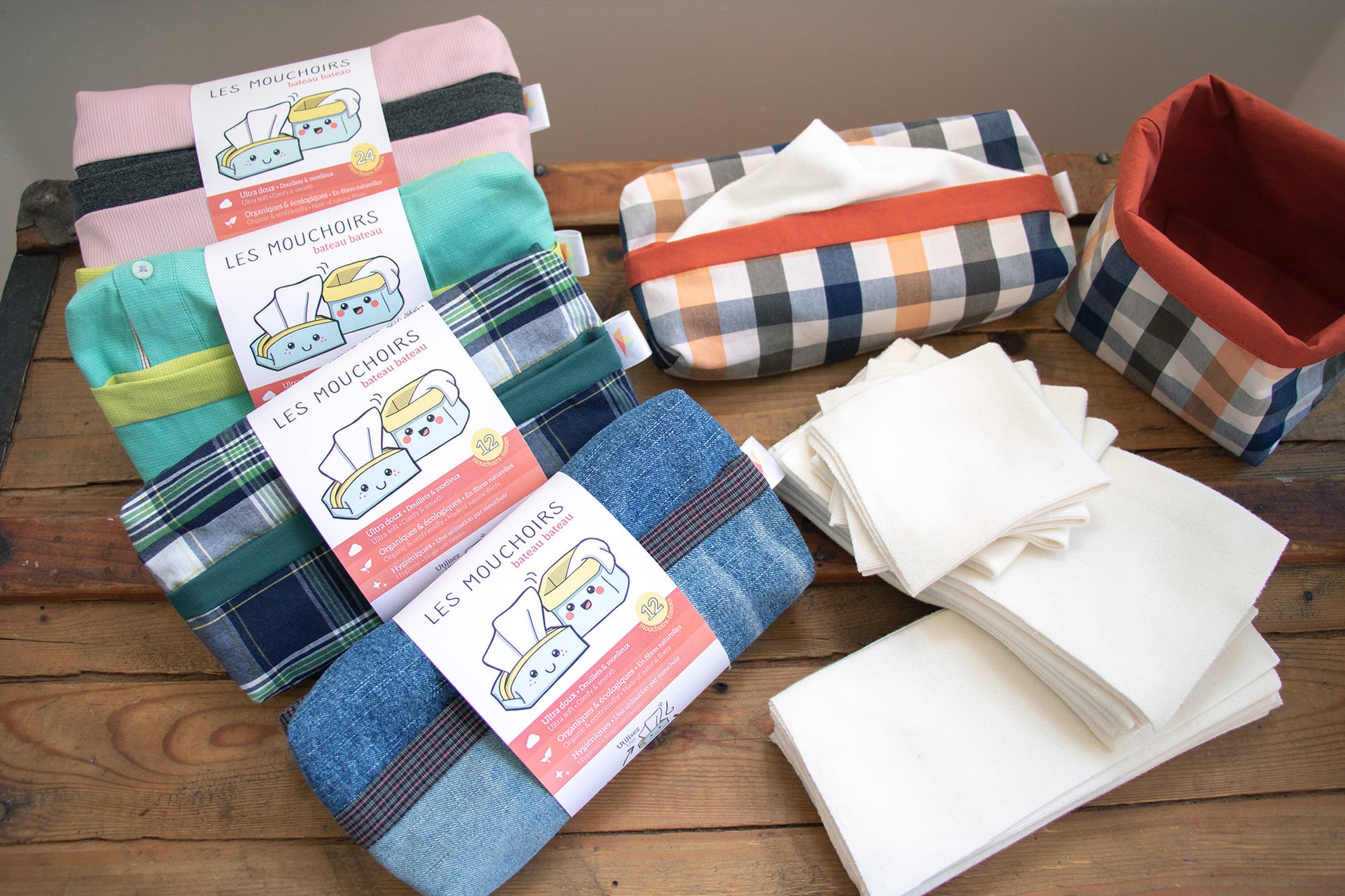La plupart des gens ont en tête qu’un mouchoir lavable, c’est un très grand carré de coton (les plus vintage ont même de la dentelle!), avec lequel on se mouche et qu’on replie dans sa poche pour le réutiliser plus tard. Cette idée qu’on a du mouchoir lavable vient de nos grands-parents et je voulais contribuer à rendre cette idée plus moderne et dans l’air du temps.