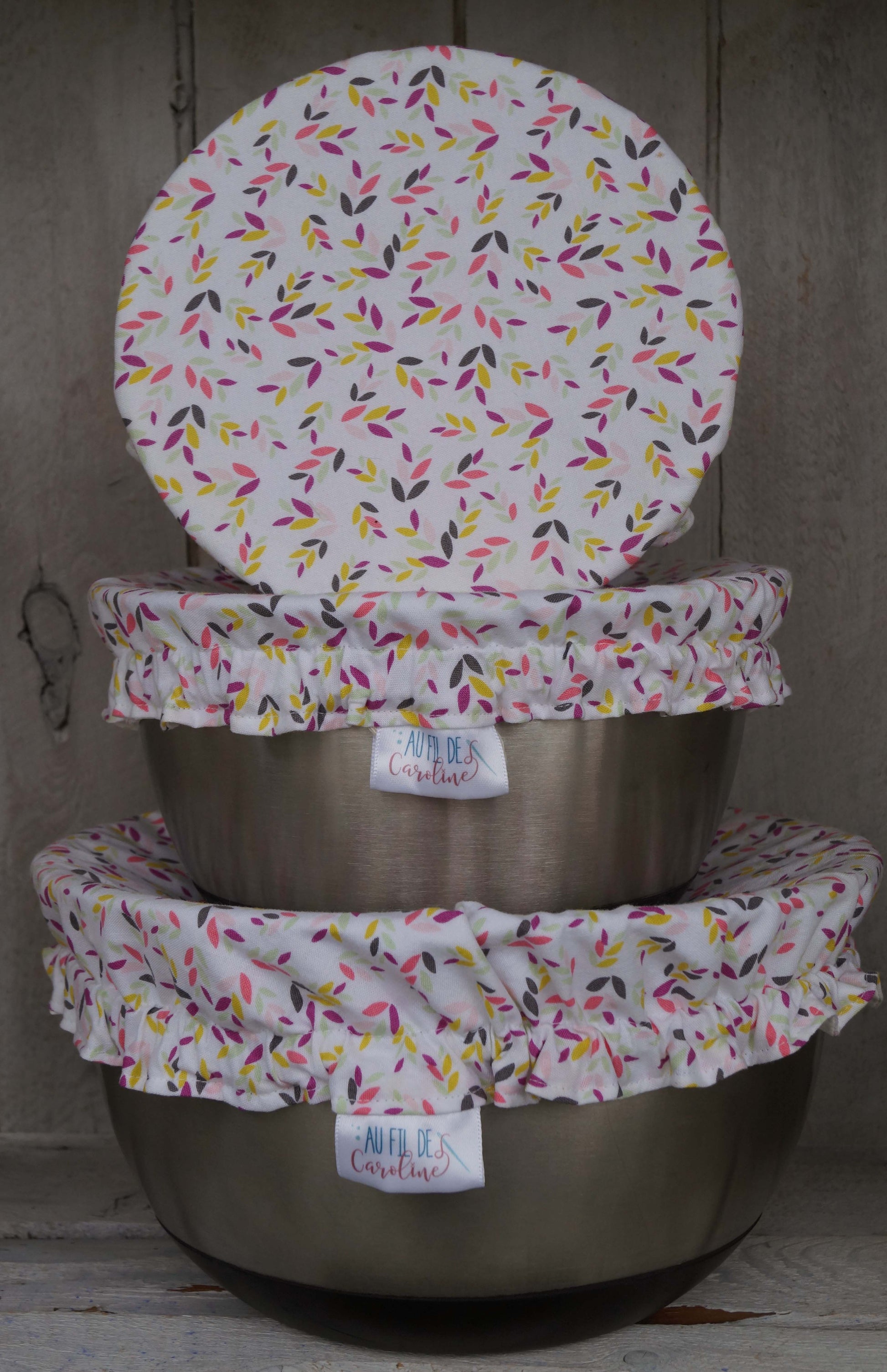 Des couvre-bols qui remplacent aisément les pellicules en plastique (communément appelées Saran Wrap) et qui sont tout aussi jolis qu'utiles! Une belle idée-cadeau si vous apportez un plat à l'hôte ou l'hôtesse d'une soirée à laquelle vous êtes invité.