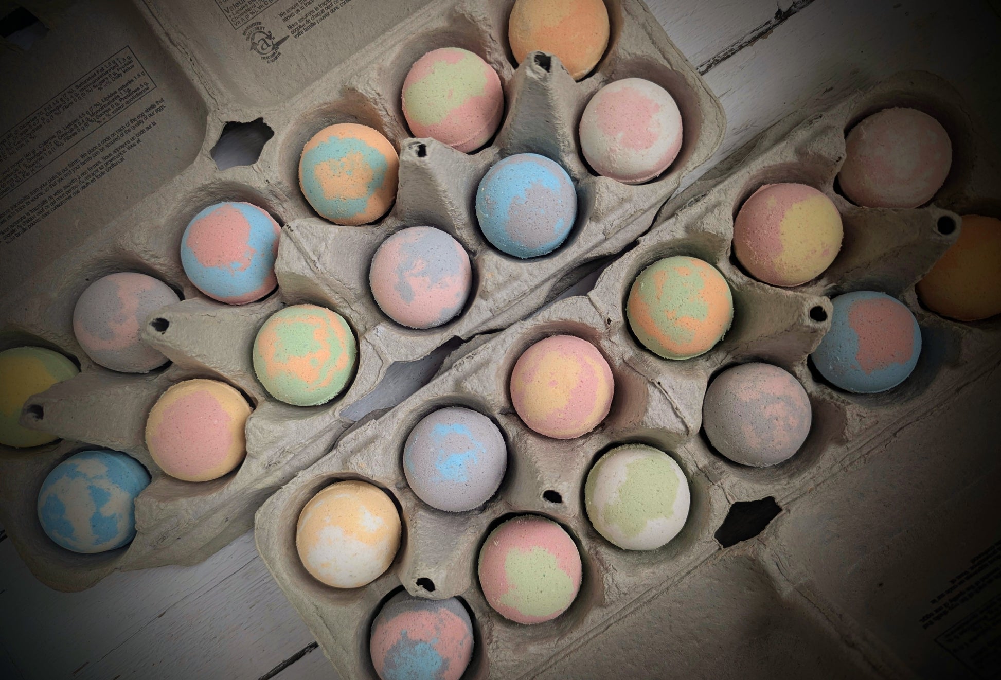12 minis bombes de bain d'environ 27 g chacune présentées dans une douzaine d’œufs. Le tout composé d'odeurs variées* sucrées et fruitées.