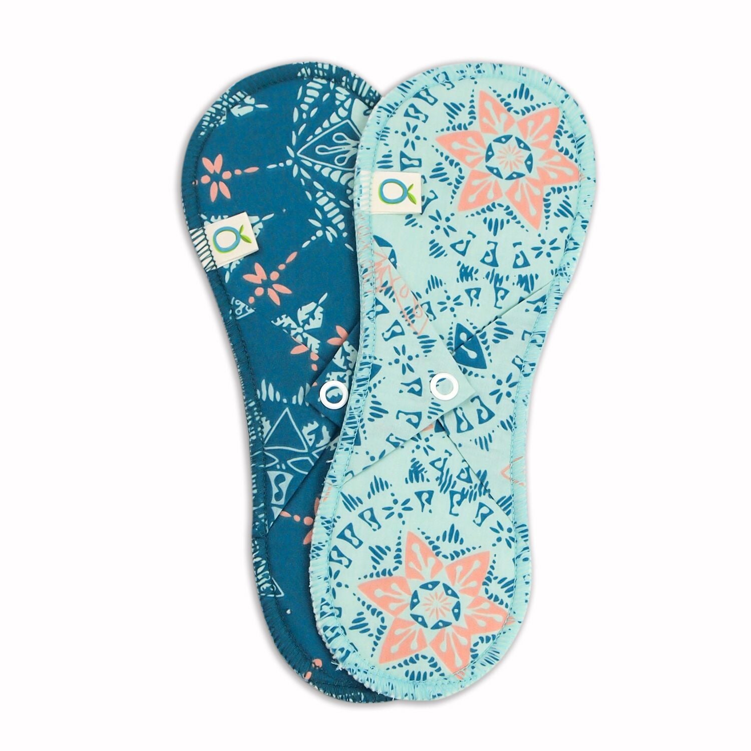 Les Öko-liners, protège-dessous réutilisables, ont des ailes qui font tenir la serviette bien en place grâce à un mince bouton-pression s’attachant sous le sous-vêtement. Le tissu en contact avec la peau est de fibre naturelle, non-teint et non-blanchi. Cela diminue les risques d'irritations, d'allergie et d'infection. Les motifs colorés du verso de nos serviettes ajoutent une touche de gaieté!
